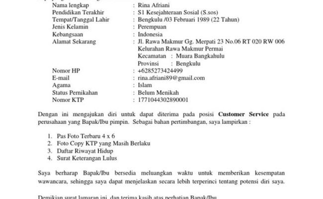 Akan tetapi mamikos sarankan, usahakan jangan membuat sama dengan cv yang kalian tulis sebagai lampiran. Besar harapan saya agar bapak/ibu hrd berkenan untuk. Terima kasih telah membaca kompas.com. Untuk mendapatkan pekerjaan yang bagus sesuai dengan yang anda inginkan di sebuah perusahaan, anda wajib mengajukan surat lamaran kerja. Disertai contoh surat lamaran kerja via email dan surat lamaran pekerjaan dengan riwayat hidup dan terpisah. Apa saja hal yang perlu diketahui saat sebelum melamar pekerjaan? Perusahaan legal dan memiliki kawasan industri yang kondusif juga fasilitas lengkap. Indonesia morowali industrial park (pt. Susahnya mencari kerja dan lapangan pekerjaan pun tidak tersedia sesuai dengan skill mereka. Melalui surat lamaran, pelamar meminta agar dia diberi pekerjaan. Hrrecruitment@imip.co.id pelamar dari sulawesi : Berikut contoh surat lamaran pekerjaan yang bisa kamu download file dokumennya juga, link di bagian akhir artikel. Lamaran pekerjaan imip morowali / lamaran pekerjaan imip morowali :